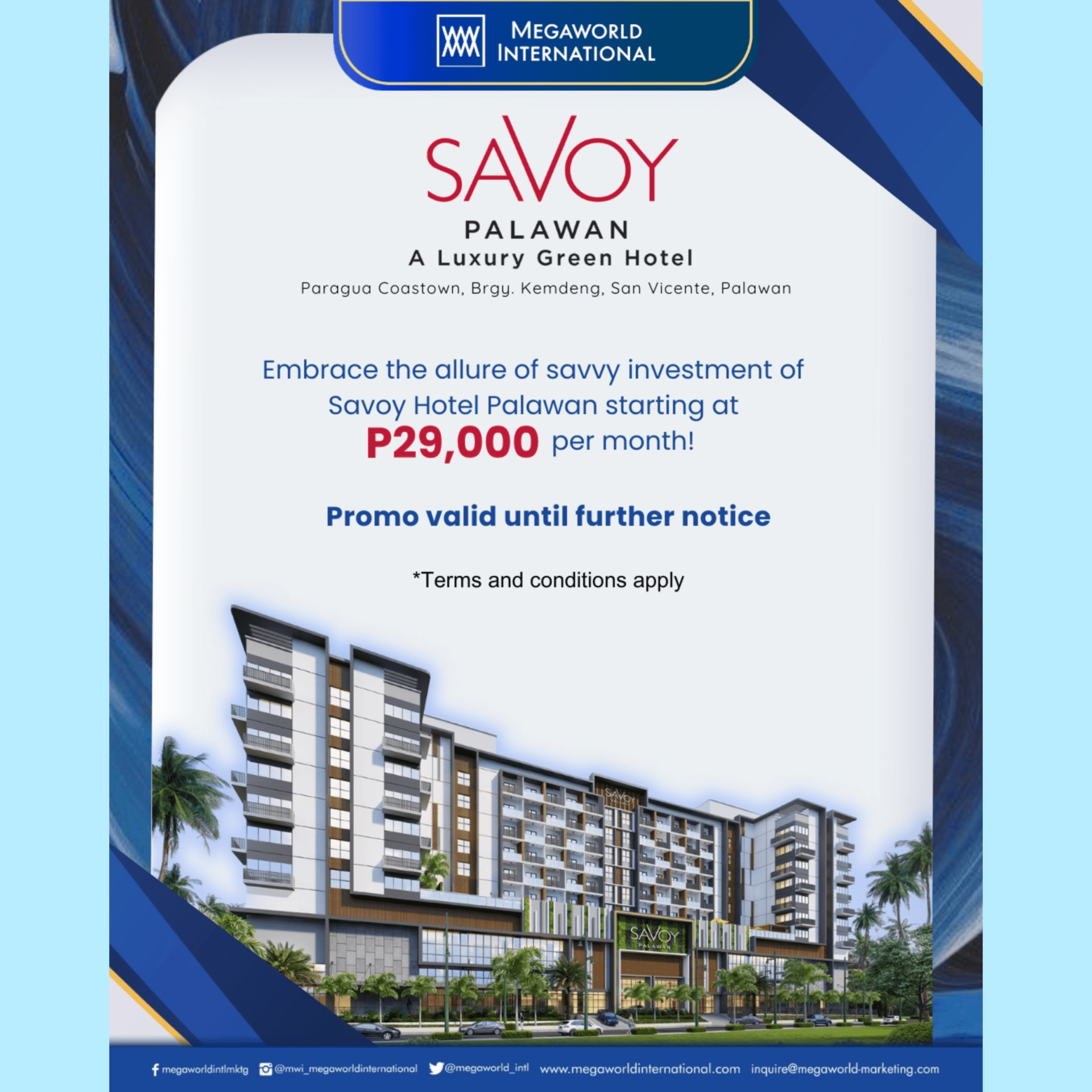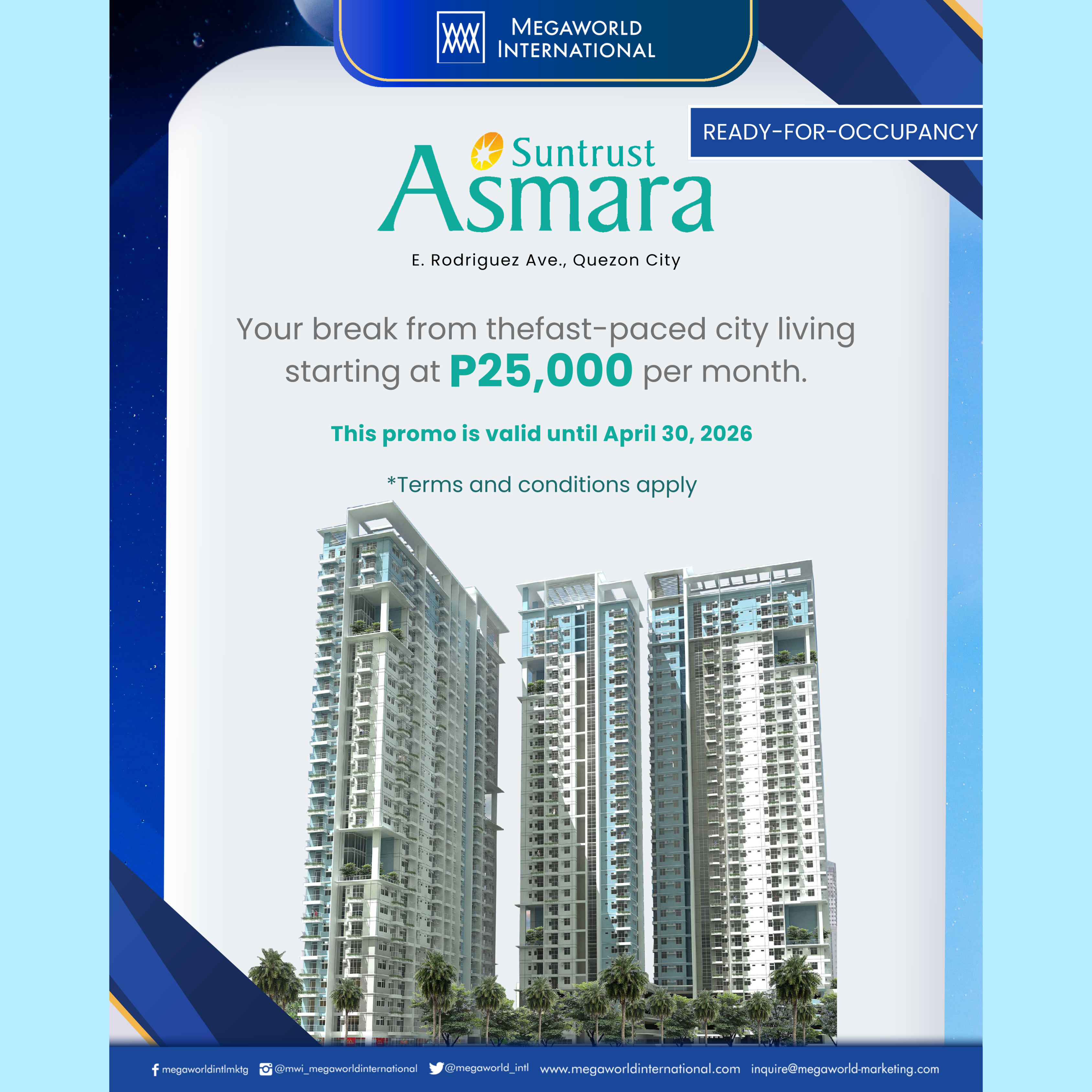 Megaworld Corporation is a real estate company in the Philippines that values innovation in the field, pioneering the live-work-play-learn-shop lifestyle concept. The Company keeps pushing boundaries as to how real estate is known to be. From its beginnings in spearheading the township developments to upgrading it into the future-proof iTownships, Megaworld Corporation has proven itself to be the leading property developer in the Philippines.
