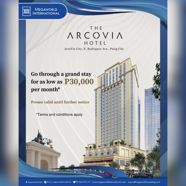 Own a hotel unit at The ArcoVia Hotel, ArcoVia City, Pasig, for as low as ₱30,000 per month.