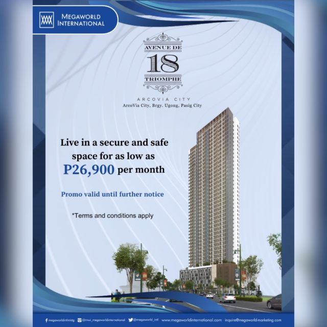 Relax in an upscale city living at 18 Avenue De Triomphe, ArcoVia City, Pasig, for as low as ₱26,900 per month.