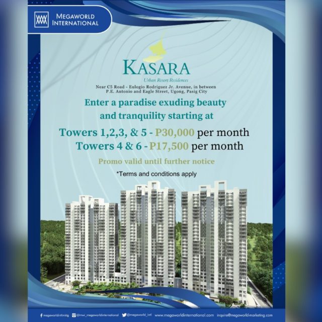 Invest in your future today at Kasara Urban Resort Residences, located near C5 Road along Eulogio Rodriguez Jr. Avenue, between P.E. Antonio and Eagle Street, Ugong, Pasig City.
