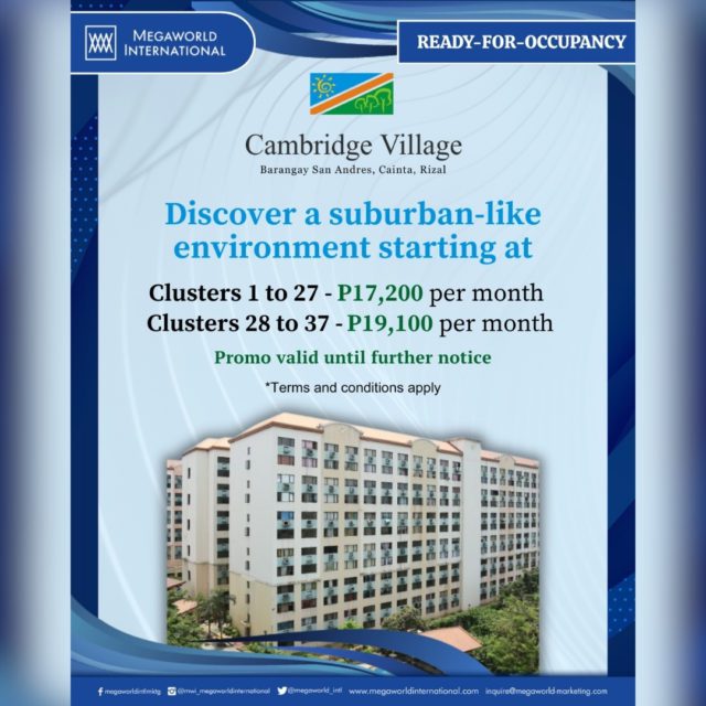 Discover affordable condo living at Cambridge Village, Brgy. San Andres, Cainta, Rizal!