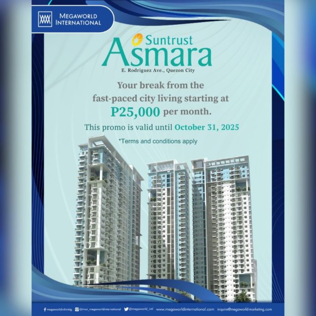 Experience modern living at Asmara, E. Rodriguez Ave., Quezon City! Get your own space for as low as P25,000 per month.