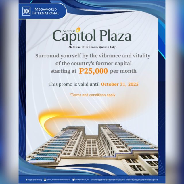 Enjoy elegant city living at Capitol Plaza in Quezon City for as low as P25,000 per month.