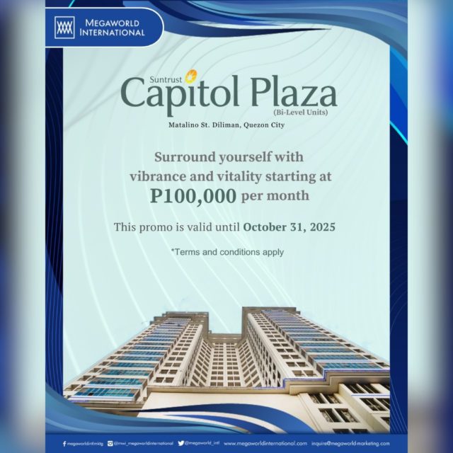 Live large at Capitol Plaza’s bi-level units in Quezon City. This unmatched space is for only P100,000 per month.