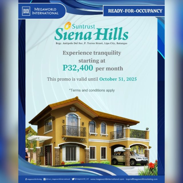 Enjoy a home surrounded by nature and fresh air at Siena Hills in Lipa City, Batangas for as low as P32,400 per month.