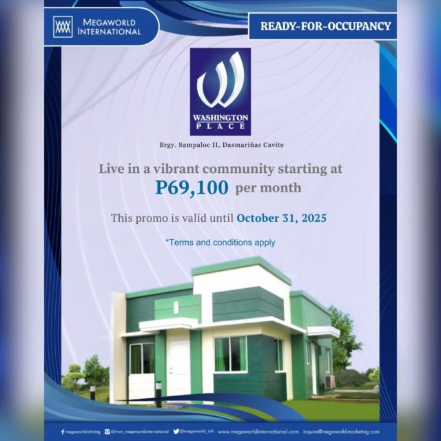 Live with ease and accessibility at Washington Place in Dasmariñas, Cavite for only P69,100 per month.