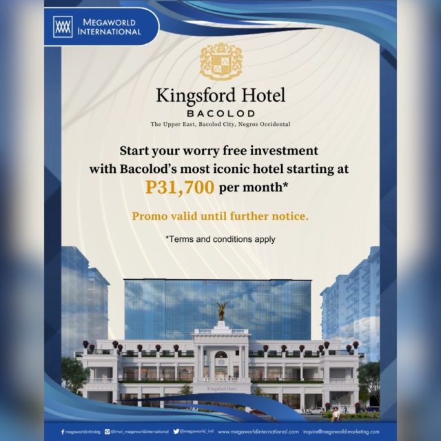 Start your worry-free investment at Kingsford Hotel Bacolod, located at The Upper East, Bacolod City, Negros Occidental.