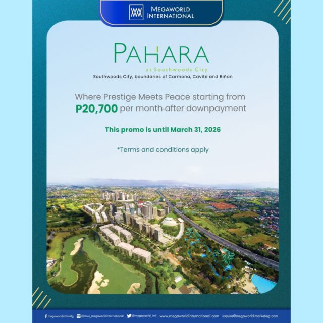 Experience luxurious living at Pahara in Southwoods City—your serene escape from the city. Starting at P20,700 per month after 5% down payment, with up to 3% PDC discount or 2% closing discount.