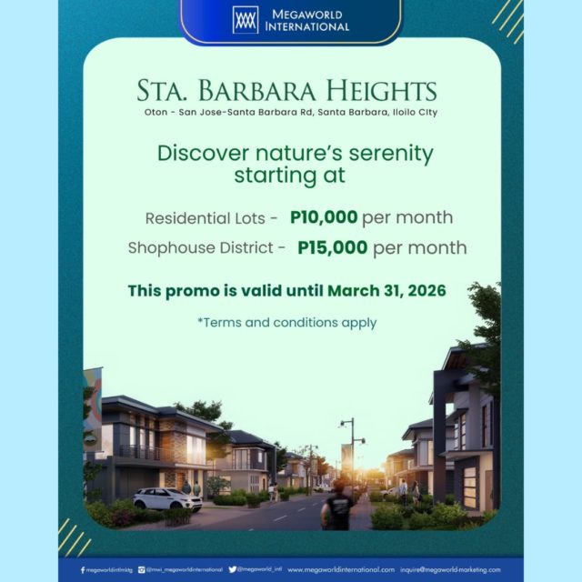 Invest in prime living at Sta. Barbara Heights in Iloilo City, Barangay Sta. Barbara! Residential lots – from P10,000 per month Shophouse District – from P15,000 per month. Seize this opportunity now!