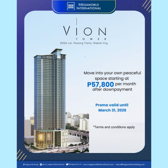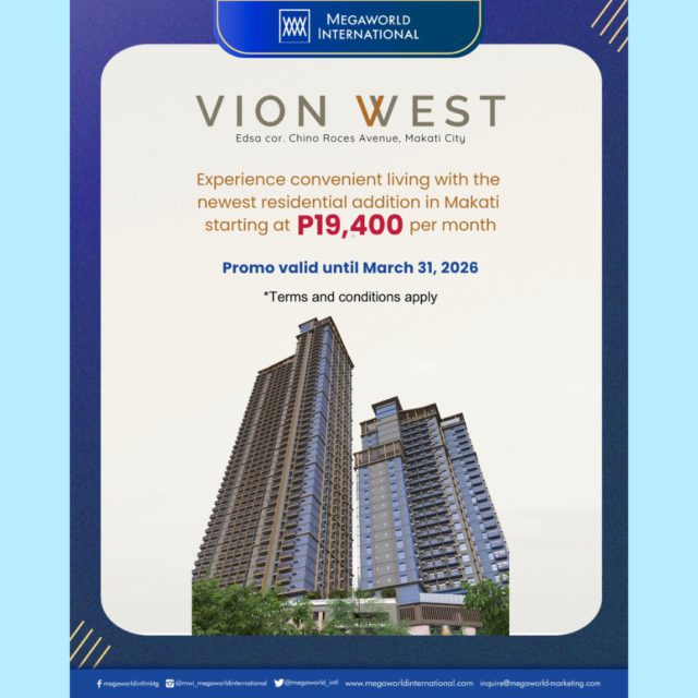 Live in one of Makati’s most connected addresses at Vion West for as low as P19,400 per month after downpayment. Enjoy a 3% PDC discount when you reserve today. Don’t miss this opportunity!