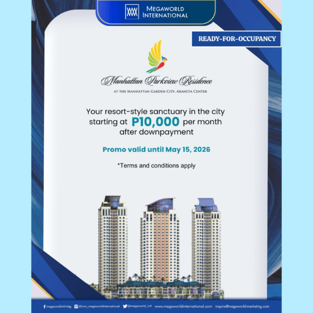 Start living at the heart of Araneta City with Manhattan Parkview Residence for as low as P10,000 per month after downpayment.