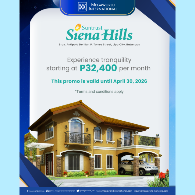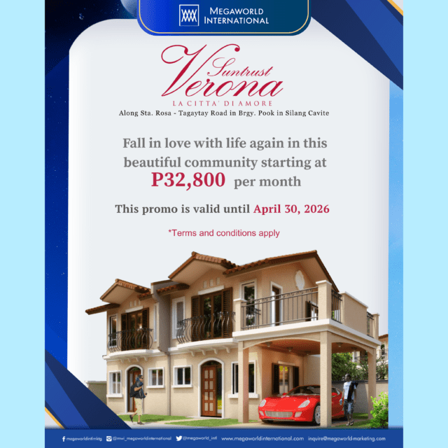 Own a luxurious home starting at P164,900 per month and enjoy an exclusive 10% promo discount.