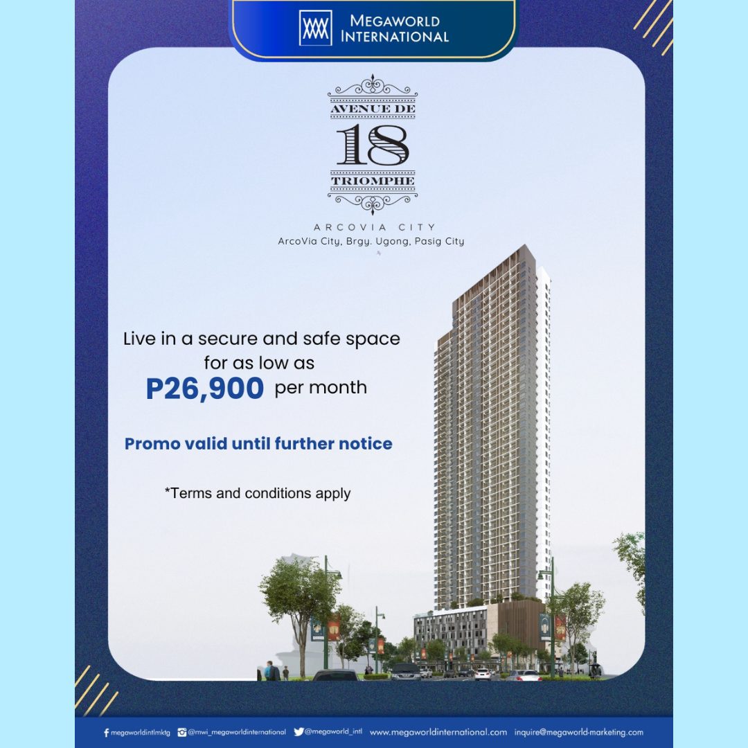 Arcovia Palazzo, the second residential development within Arcovia City, is located along C5 Road, Pasig City, and will definitely entice you to live and enjoy a family-centric community lifestyle. Reserve now and enjoy low monthly payments starting at Php 18,000* and save as much as Php 953,000.00* worth of discounts!