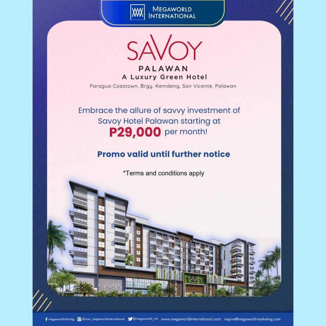 Megaworld builds Savoy Hotel in Palawan, the first-ever luxury green hotel real estate in the Philippines.