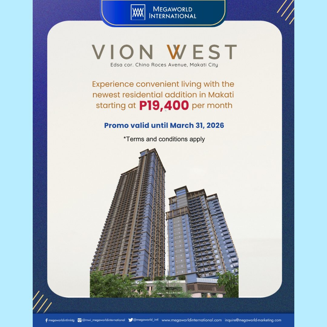 Wake up and feel good every morning with the great view Vion Tower can offer. Its future-ready residential skyscraper design and perfect location will surely make your home exceptional! Take advantage of this limited offer now and enjoy low monthly payments starting at P16,000* per month! Save as much as P672,000* worth of discounts too!